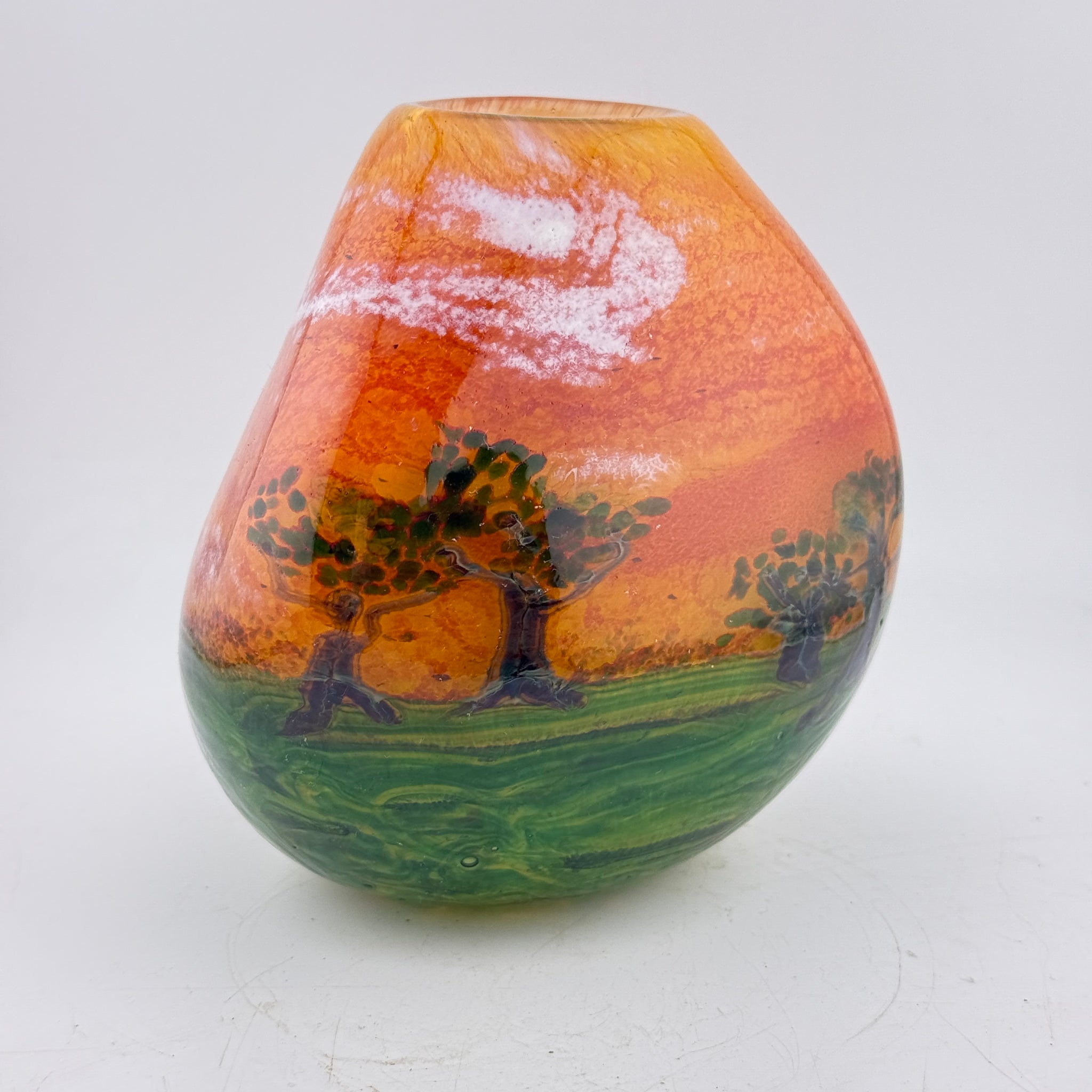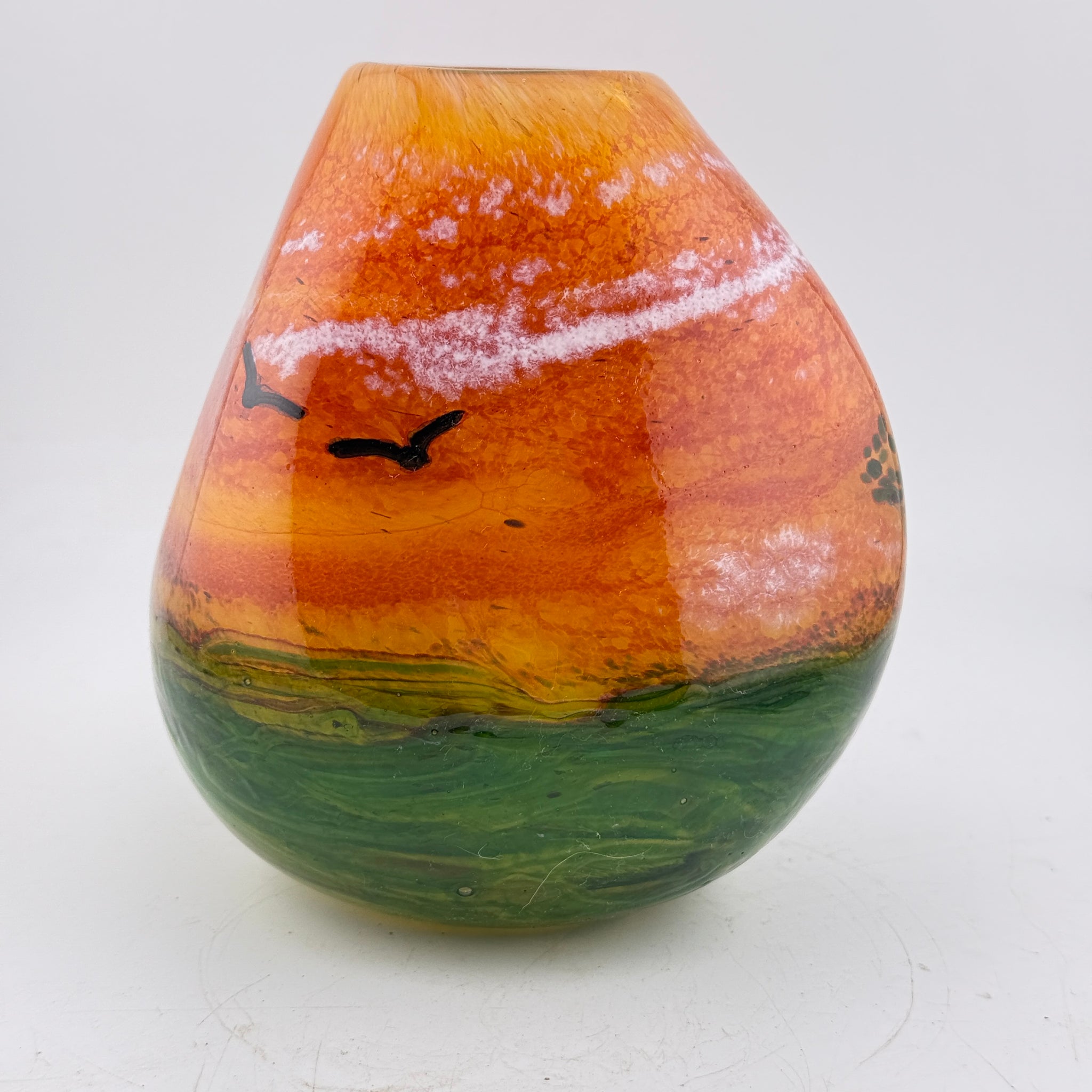 Triform Coral Sky Landscape Vase with Birds
